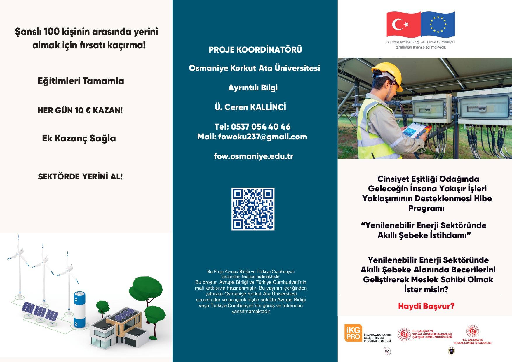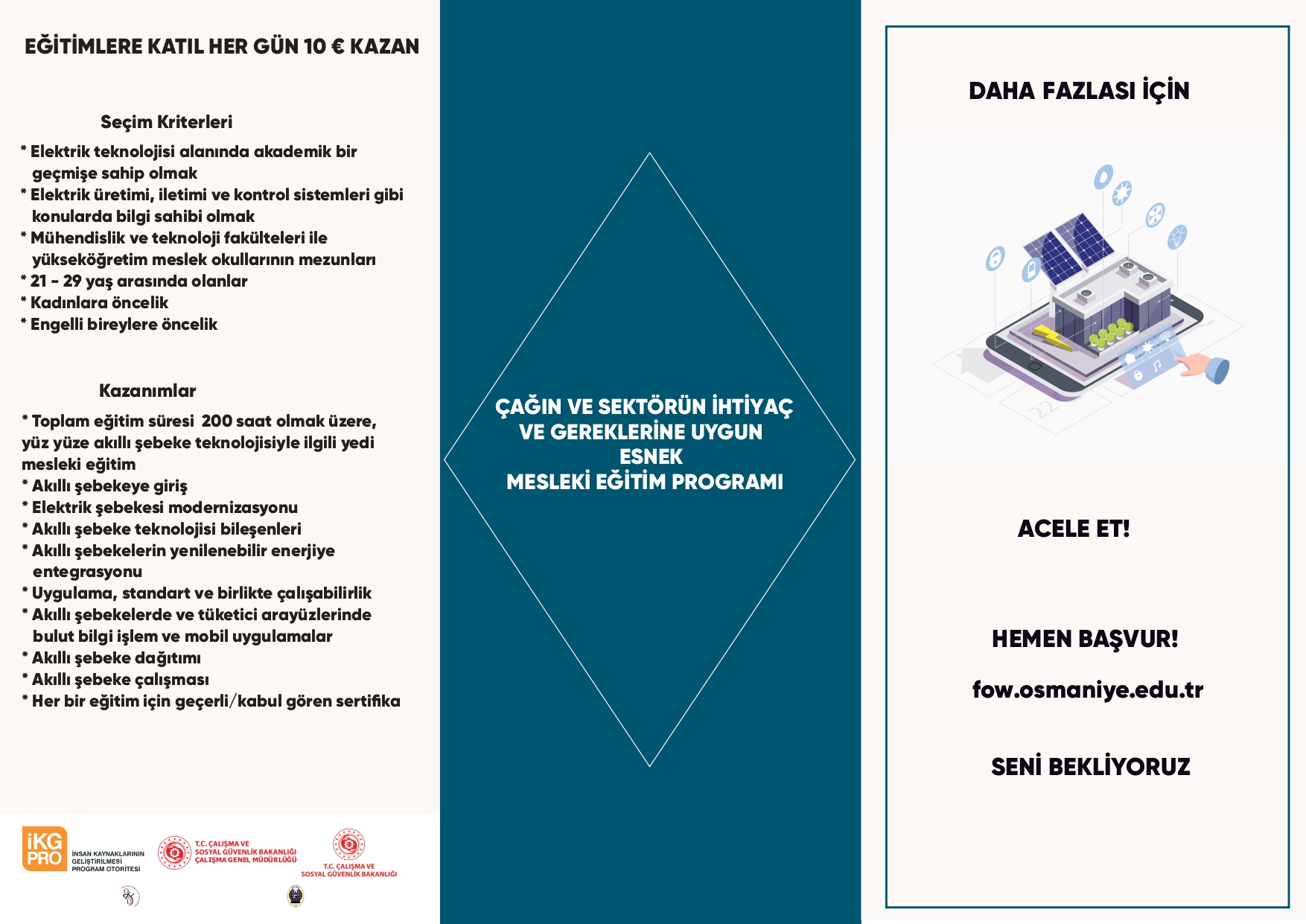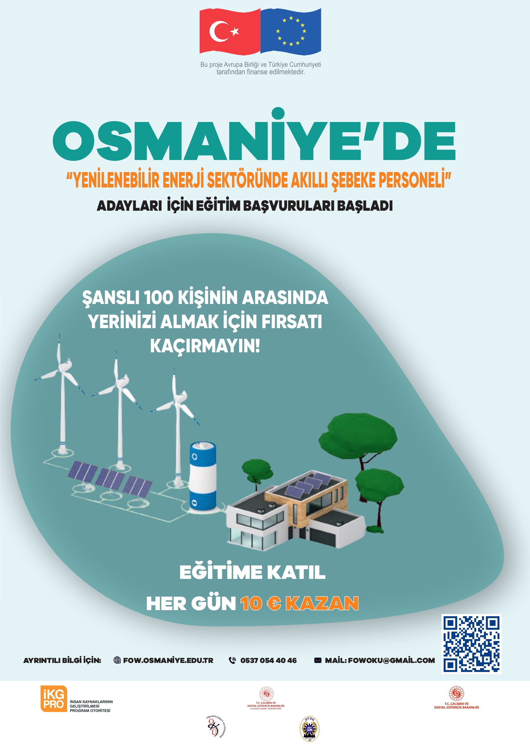 Osmaniye’de ”Yenilenebilir Enerji Sektöründe Akıllı Şebeke Personeli” adayları için eğitim başvuruları başladı.